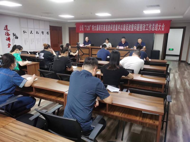 ? ? 8月19日,鄭州市市場發展投資有限公司召開“7·20”特大暴雨災害追責問責案件以案促改暨問題整改工作總結大會,教育引導廣大黨員干部更好地把思想和行動統一到習近平總書記重要講話和指示精神上來,切實把教訓變教材、把教材變方案、把方案變行動,推動中央、省委、市委各項整改要求件件落實、條條落地、事事見效。公司領導趙潔、龐曉冰、孫濤、逯衛川出席,公司本部全體人員、各子公司人員參加會議。